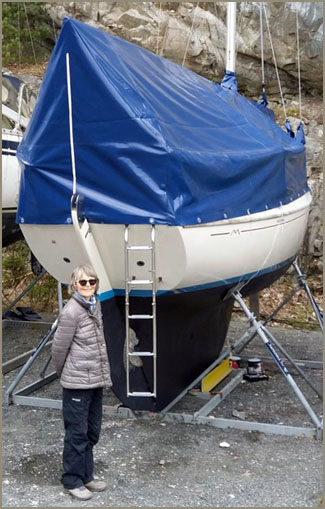 Da Flora ble satt på land i vinteropplag bestemte vi oss for å investere i nye skreddersydde presenninger. De gamle presenningene hadde gjort tjeneste i mer enn 25 år og var ikke utslitt, men svært tunge å løfte på plass. Vi forbedret presenningstativet med nye tverrgående teleskopiske stenger til å feste på rekkestøttene. Etter at stativet var montert på plass ble nøyaktig oppmåling til presenningene gjort ved hjelp av dronefotografering. Presenningene ble sydd på kort tid av Bergersen & Sønn i Skien. De er sydd slik at de bare når litt nedenfor kanten av dekket. Vårpussen kunne derfor starte med presenningene på.